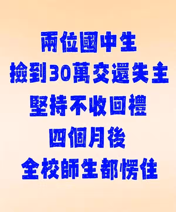 國中生「撿到30萬交還失主」堅持不收回禮!4個月後全校師生都愣住