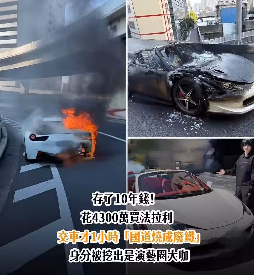存了10年錢!花4300萬買法拉利,交車才1小時「國道燒成廢鐵」身份被挖出「是演藝圈大咖!」