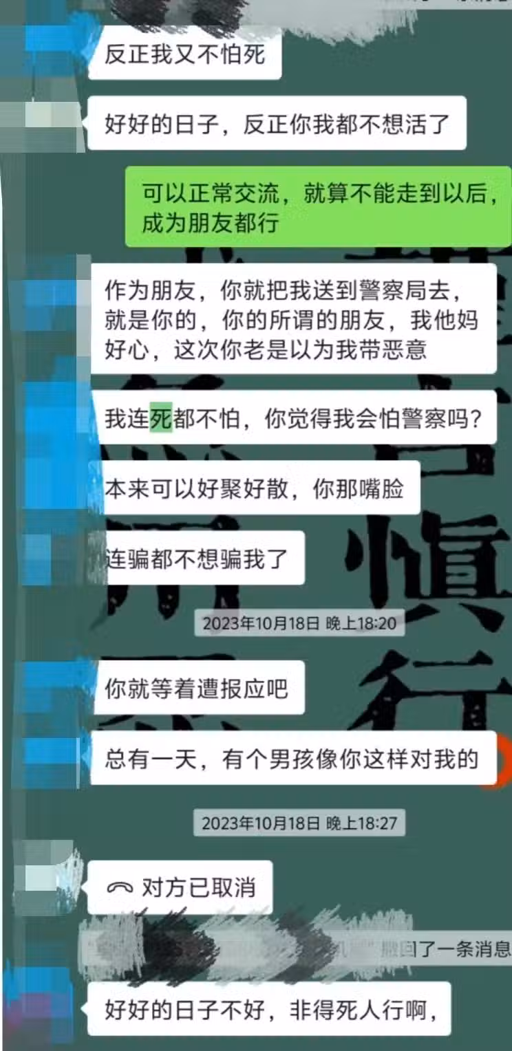 陳女士十分害怕,很快就將覃某某發來威脅消息的事告訴了警方,員警囑咐陳女士避免一個人行動。