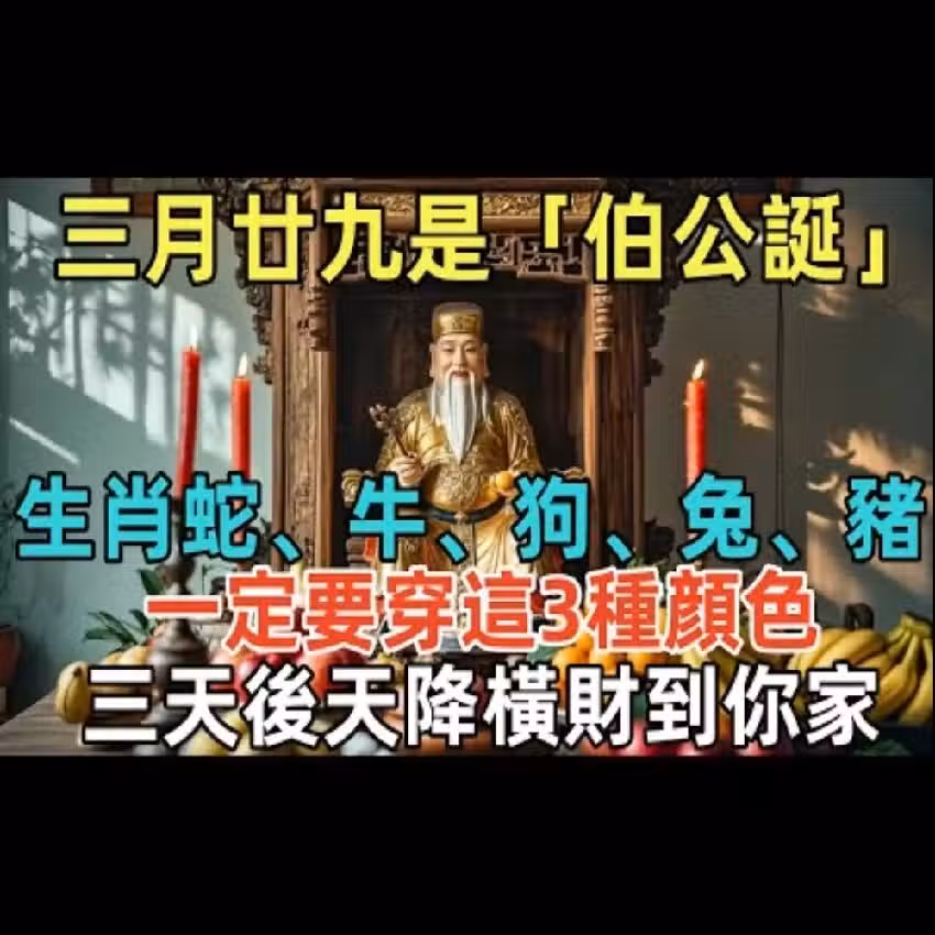 三月廿九是「伯公誕」,生肖蛇、牛、狗、兔、豬,一定要穿這3種顏色,三天後天降橫財到你家!