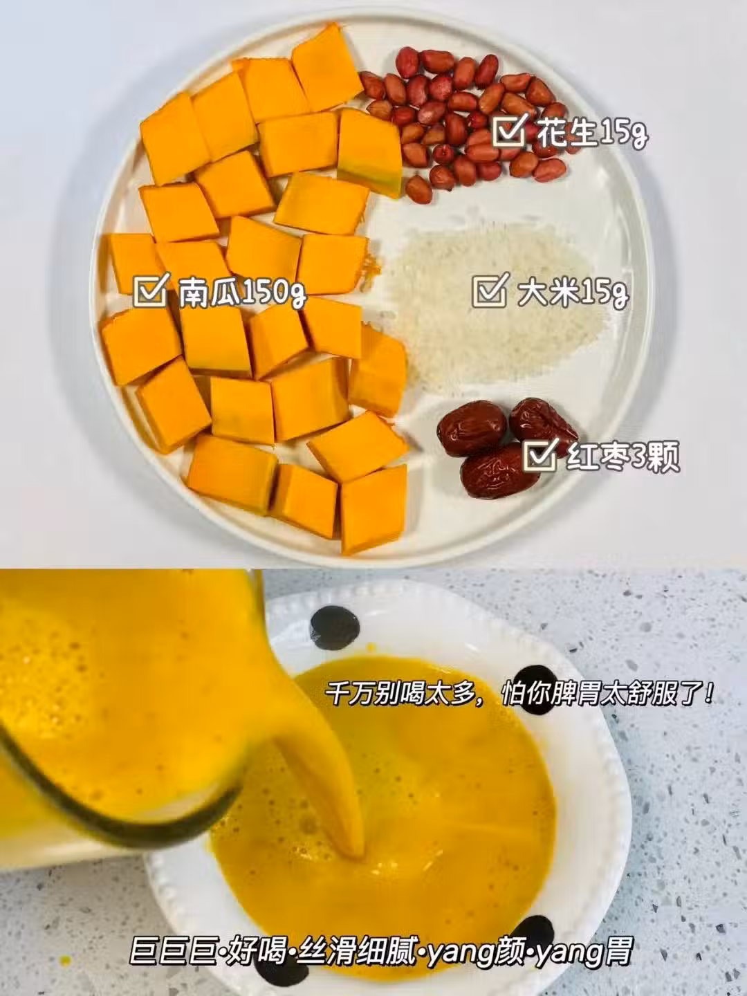 ☑️食材:南瓜150g、花生15g、大米15g、紅棗3顆