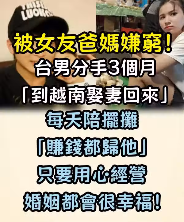 被女友爸媽嫌窮!台男分手3個月「到越南娶妻回來」每天陪擺攤「賺錢都歸他...」:只要用心經營,婚姻都會很幸福!