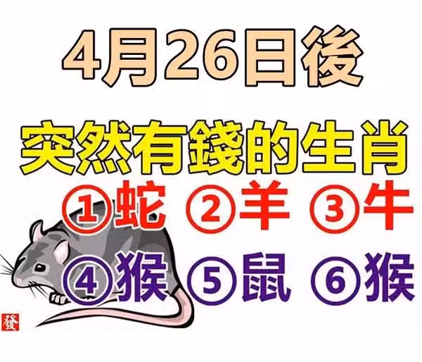 4月26日後突然有錢的六大生肖!