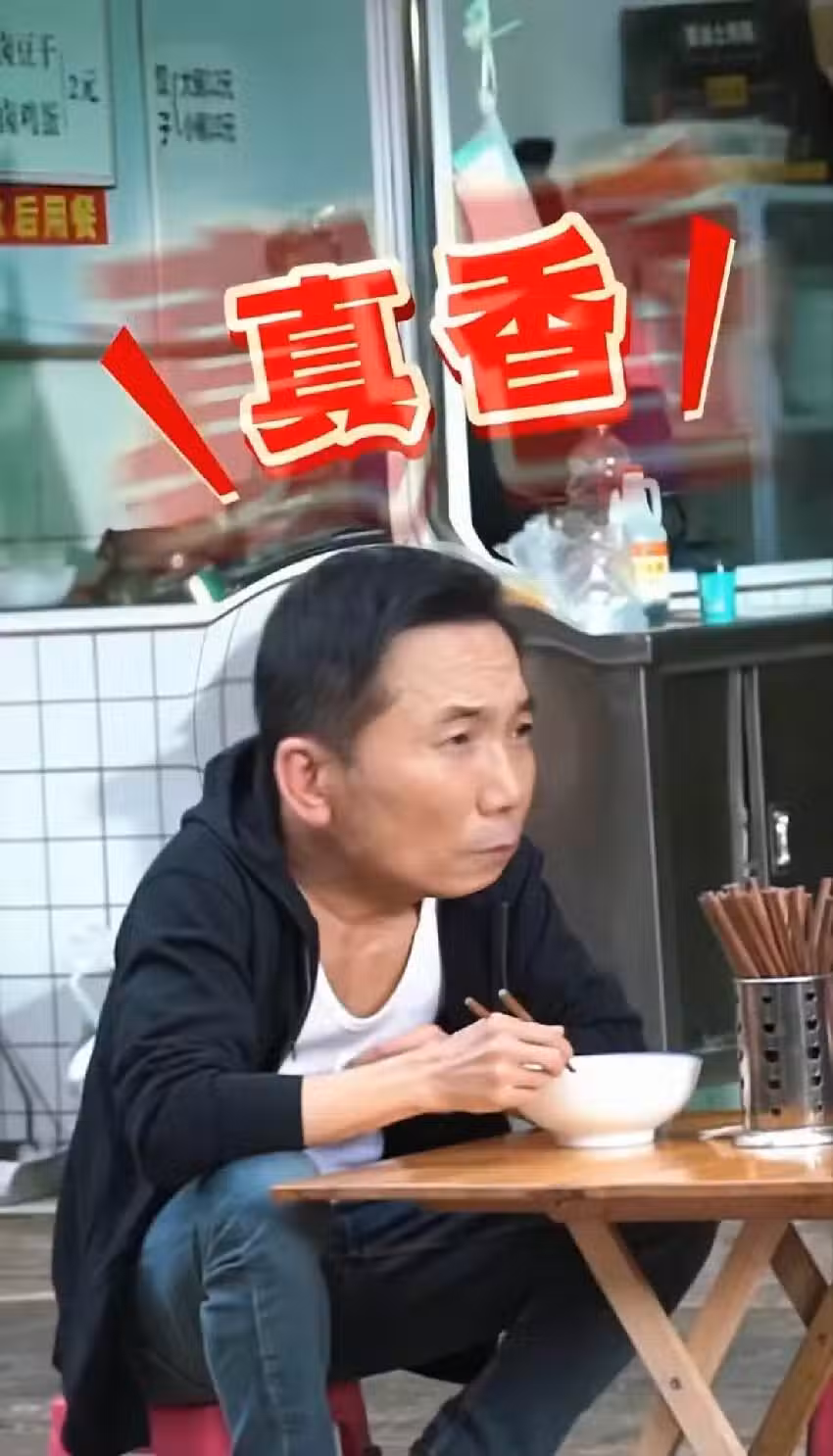 在銀幕上一拳就能把反派打倒的好萊塢打星,居然縮在雲南街頭的塑料矮凳上,捧著一碗路邊攤的麵條大口大口地吃,