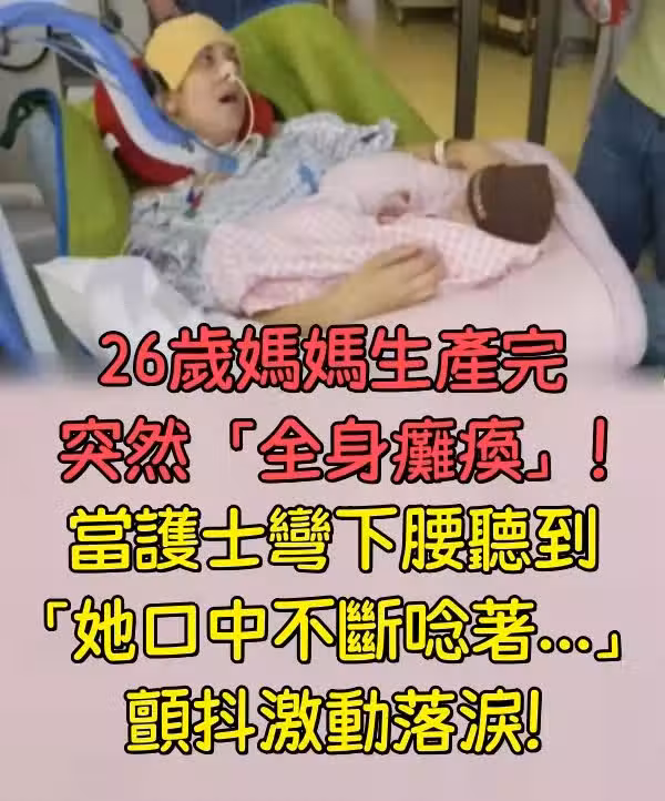 26歲媽媽生產完突然「全身癱瘓」!當護士彎下腰聽到「她口中不斷念著...」顫抖激動落淚!