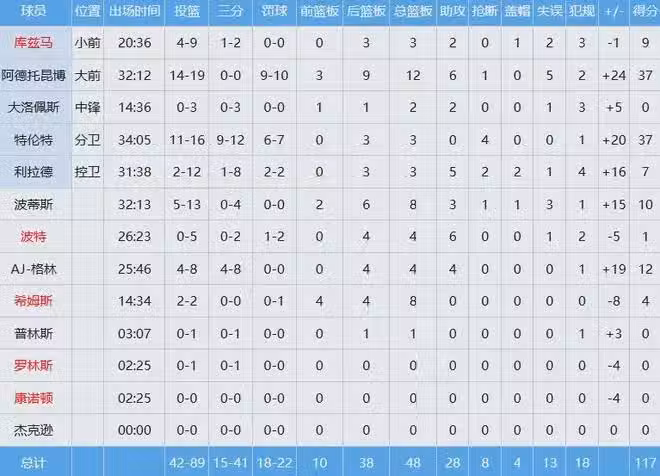 利拉德復出的兩場比賽,合計投籃25中6,命中率低至無比可憐的24%,其中最拿手的三分球16中3。