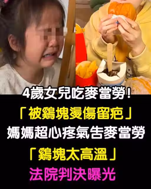 吃麥當勞被燙到!4歲女兒「被雞塊燙傷留疤」媽媽超心疼 氣告麥當勞「雞塊太高溫...」法院判決曝光