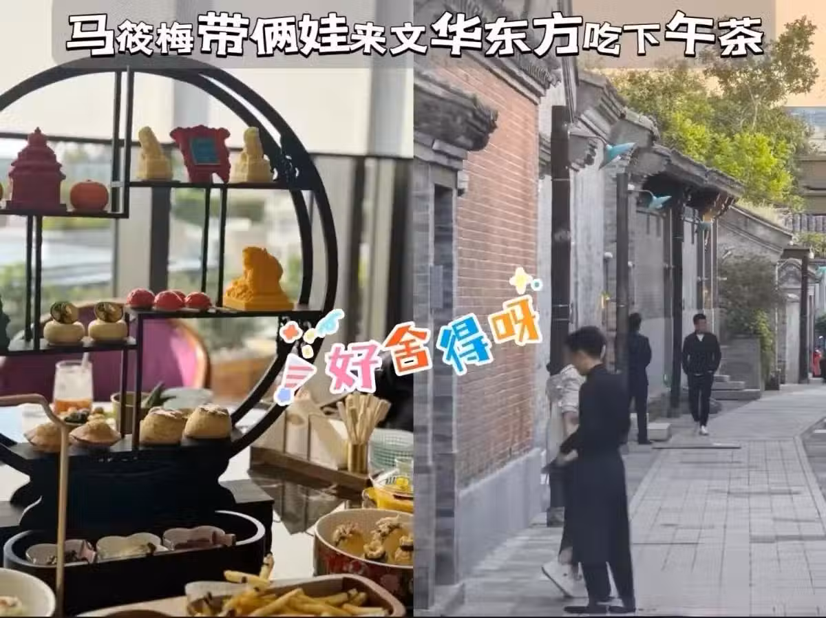 馬筱梅帶倆娃去吃下午茶,體驗北京古香古色文化!這媽真的很用心