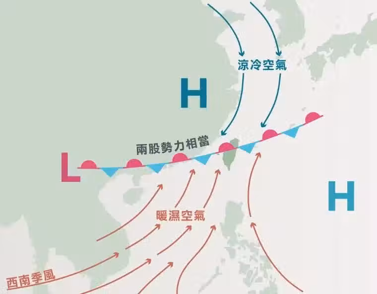 前中央氣象局局長鄭明典則進一步解釋,梅雨的特徵包含了連續性降雨,並夾帶雷陣雨,持續性的降雨機率是全年最大值。