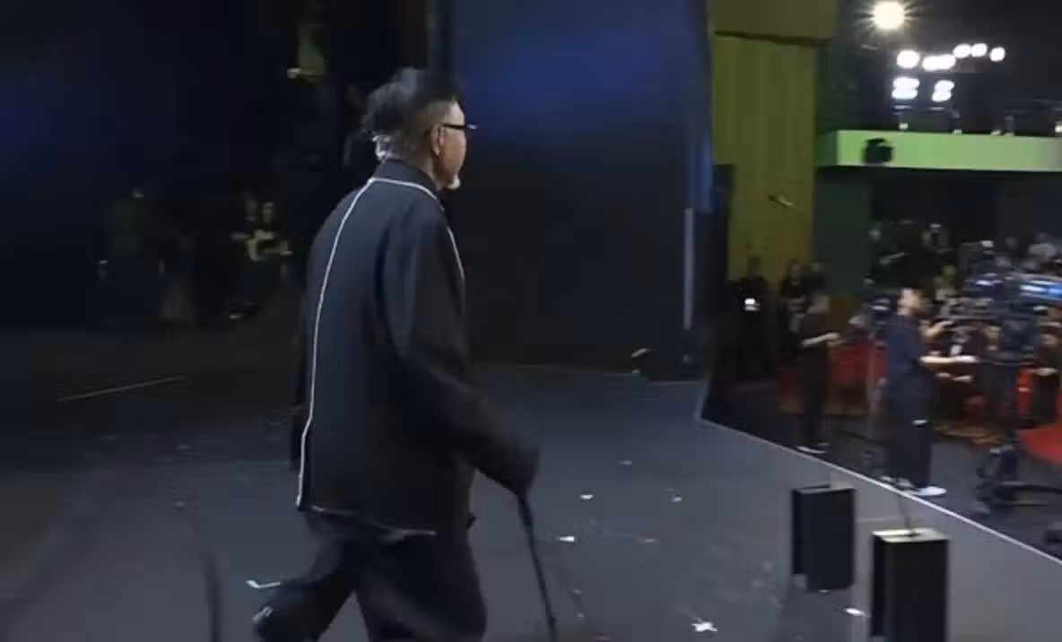 只見他穿著正式的黑色西裝,步履蹣跚的出現在鏡頭前。大家都發現,谷德昭竟然拄著拐杖,身體狀況明顯出現了問題。