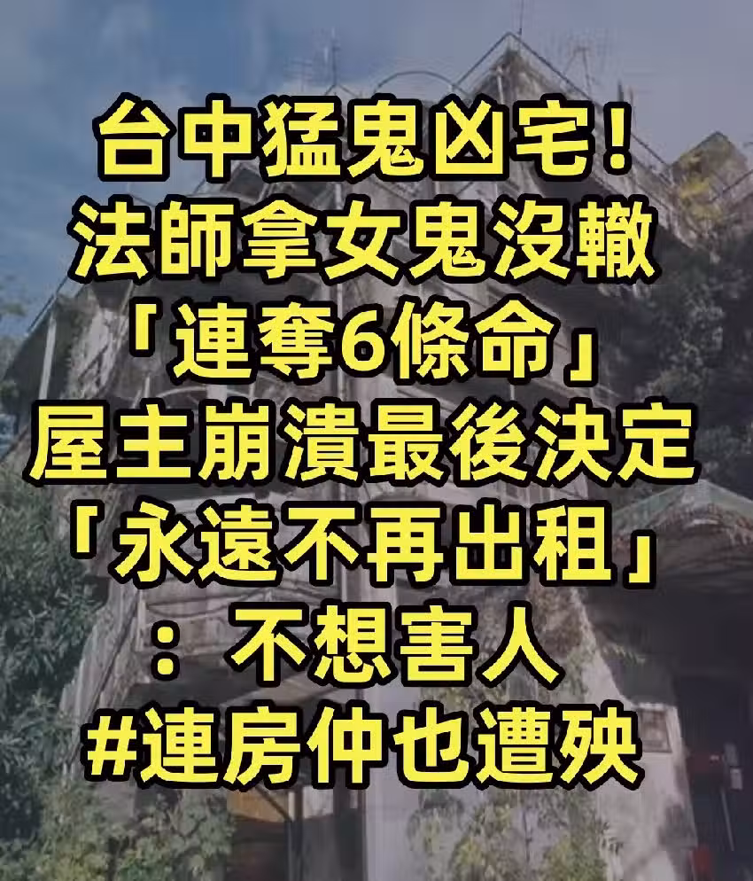 台中猛鬼凶宅!法師拿女鬼沒轍「連奪6條命」屋主崩潰,最後決定「永遠不再出租」:不想害人 #連房仲也遭殃