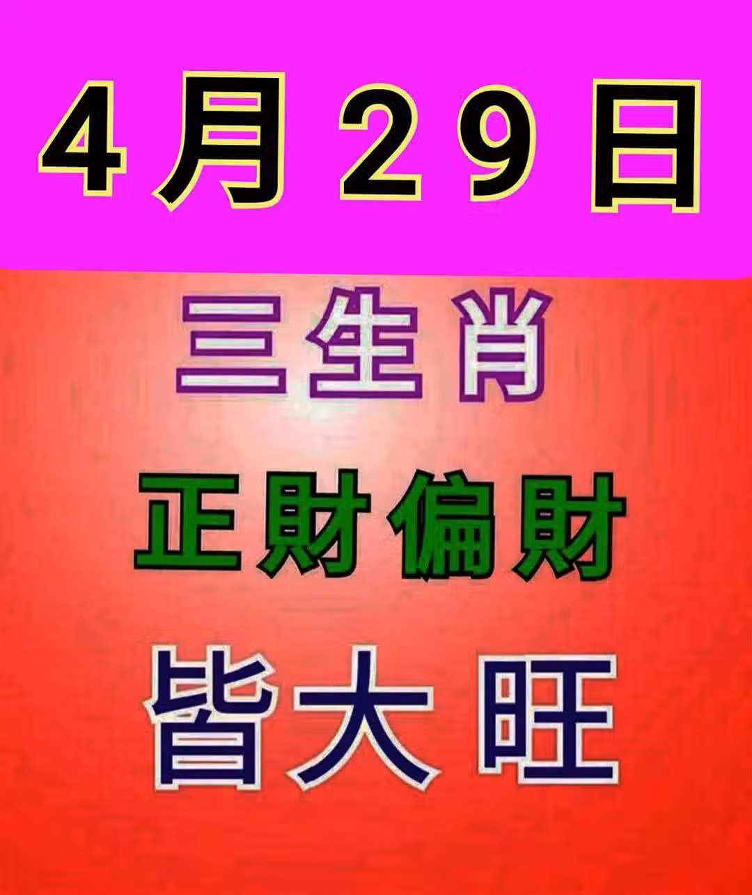 4月29日 三生肖 正財偏財「 皆大旺 」
