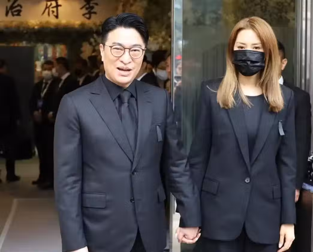 43歲徐子淇在香港,出席李兆基的葬禮,染一頭黃毛,臉部皮膚超好
