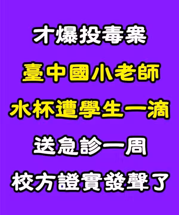 才爆投毒案!台中國小老師「水杯遭學生滴一滴」送急診一周 校方證實發聲了