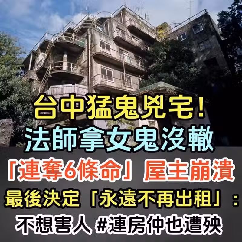 台中猛鬼凶宅!法師拿女鬼沒轍「連奪6條命」屋主崩潰,最後決定「永遠不再出租」:不想害人 #連房仲也遭殃