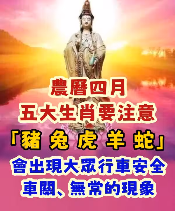 農曆四月五大生肖要注意「豬、兔、虎、羊、蛇」會出現大眾行車安全、車關、無常的現象