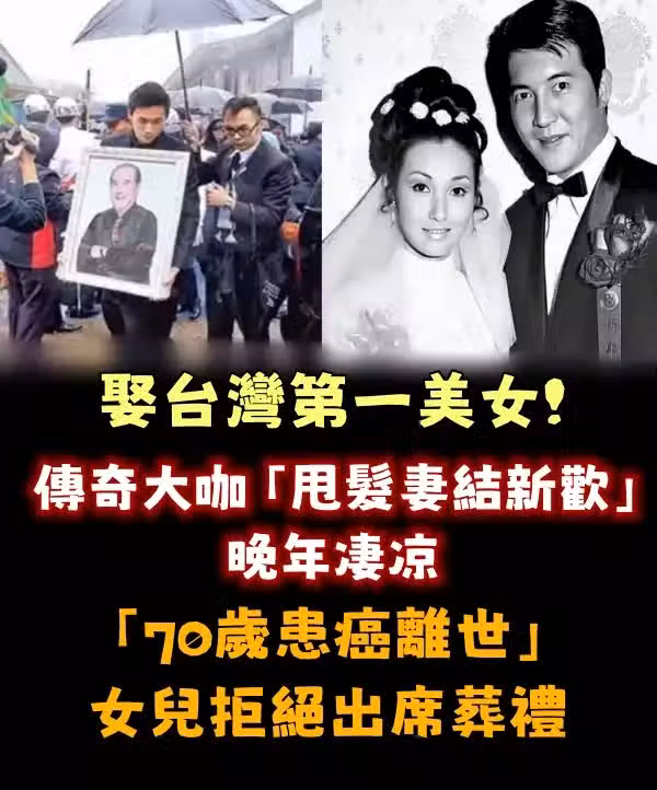 娶台灣第一美女!傳奇大咖「甩髮妻結新歡」晚年淒涼「70歲患癌離世」女兒拒絕出席葬禮