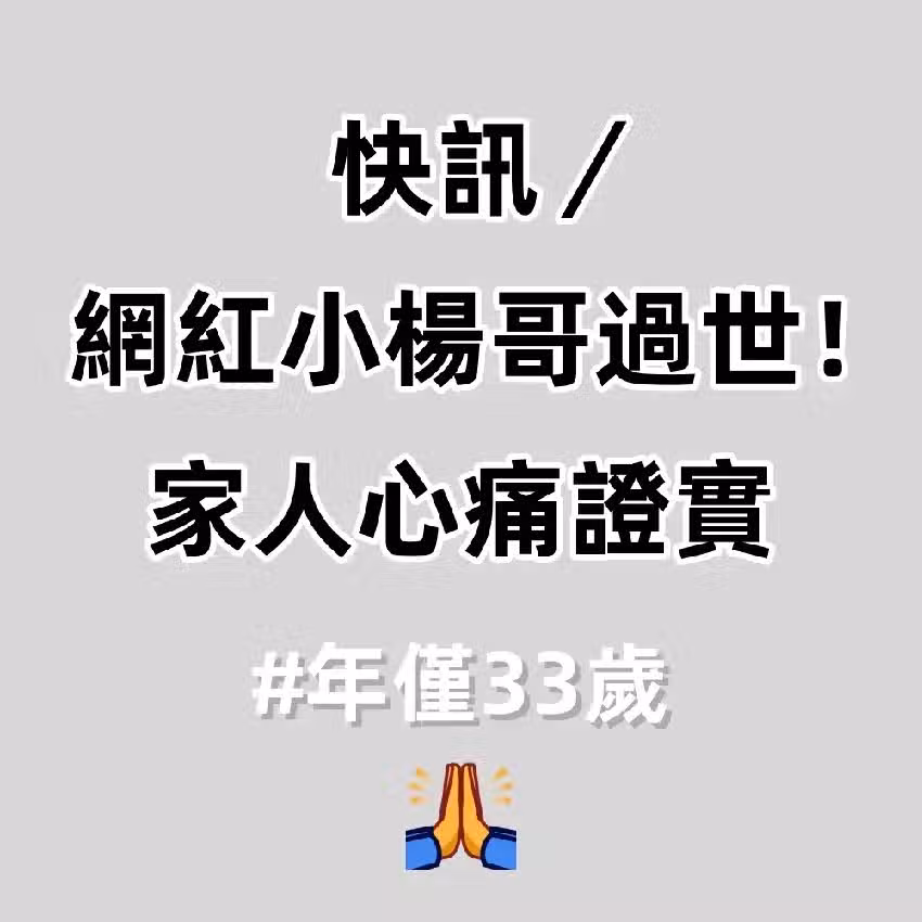 快訊/網紅小楊哥驟逝!年僅33歲 家屬悲痛證實噩耗