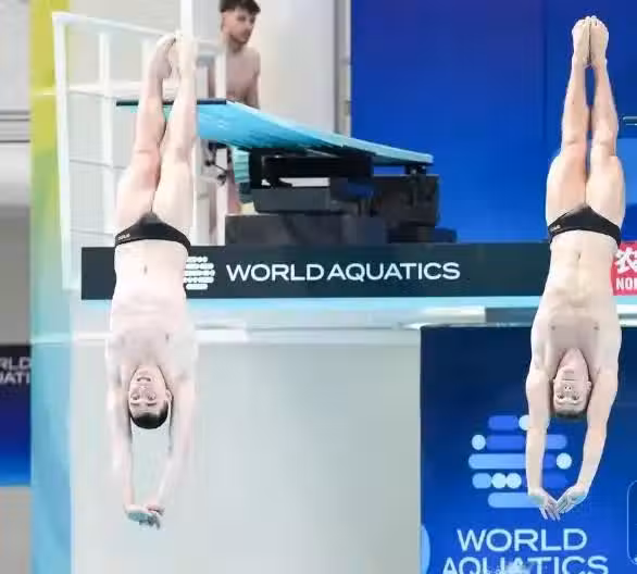 第五輪407C,難度3.4,同步性還是很不錯,胡宇康入水沒有壓死,只有6.5的有效分,單跳79.56分,總分354.03分依然第一。
