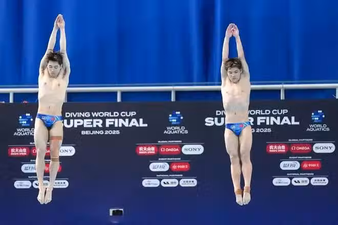 兩位小將是今年才組合一起參賽,前面在加拿大站也聯手奪冠,不過當時只得到388分,時隔半個月,兩人的進步非常大,無論是同步性還是個人技術能力,都有明顯的提升,雖然稍有瑕疵,不過整體的發揮很出色,這個分數很有競爭力,領先第二名英國組合近14分,第三名是德國組合。