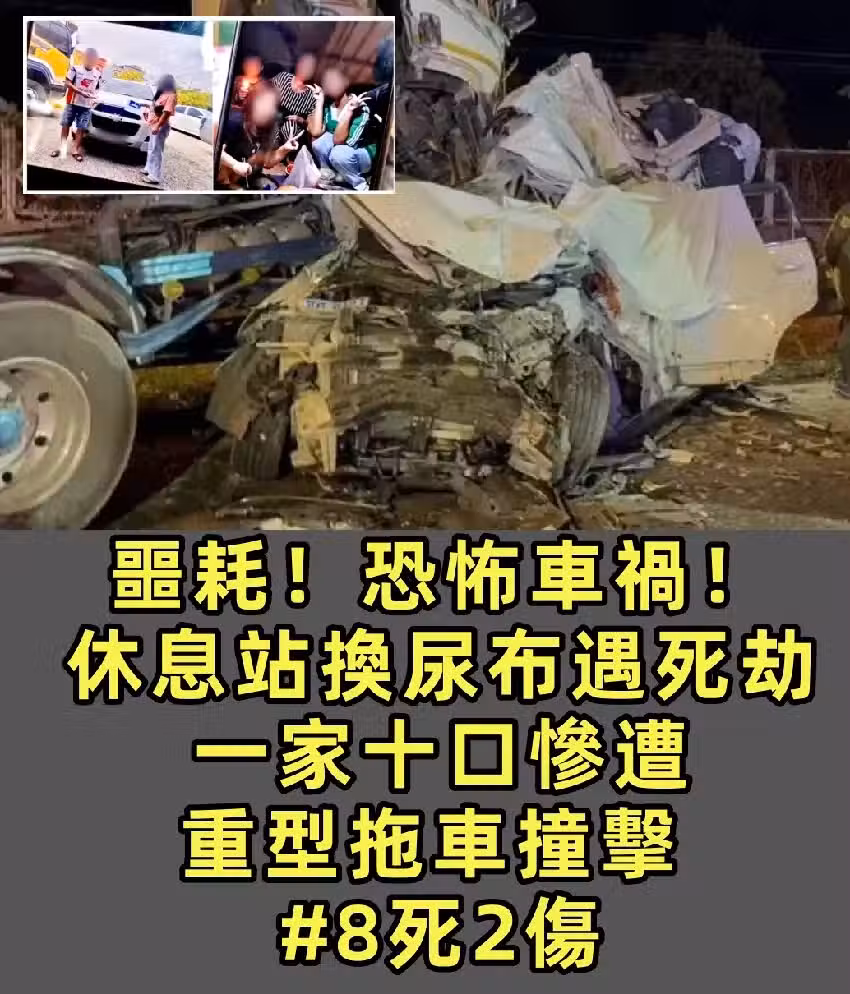噩耗!休息站換尿布遇死劫 一家十口慘遭重型拖車撞擊 8死2傷