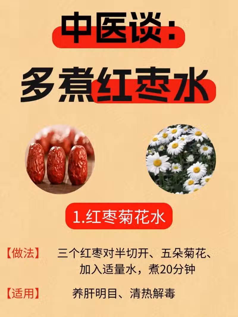菊花清肝瀉火,中和紅棗的溫熱屬性。適合容易上火又想補氣血的人,養肝明目還能防燥,口感清甜不膩。
