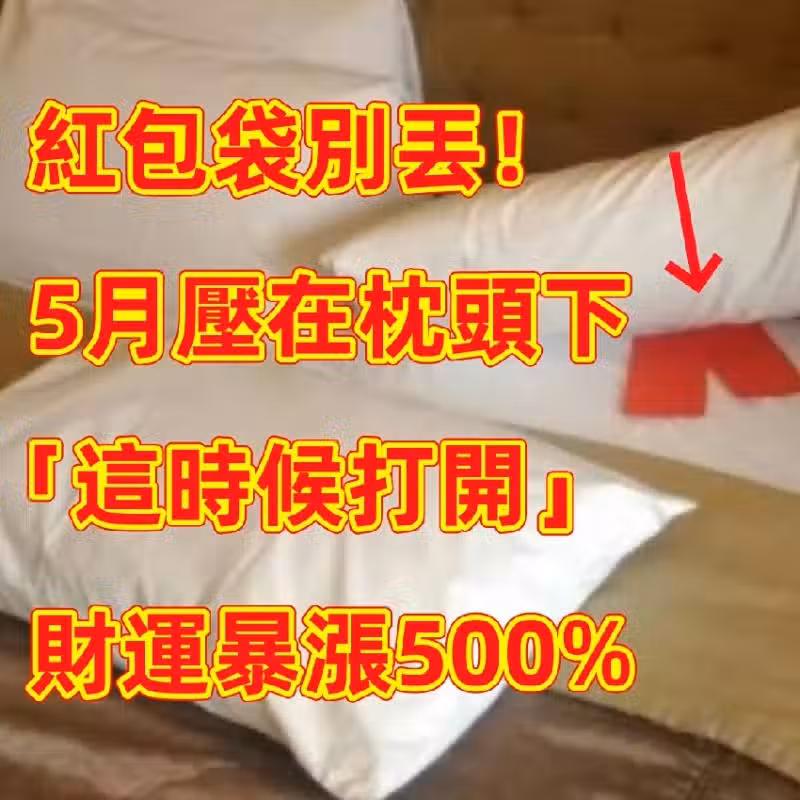 5月一到,正是轉運開財的黃金時刻!民間流傳一個超靈驗的小秘訣,就是把「紅包袋」壓在枕頭底下,等到指定時刻打開,就能財運暴漲、好運來襲,尤其是偏財、橫財運超旺,有機會發大財💰!