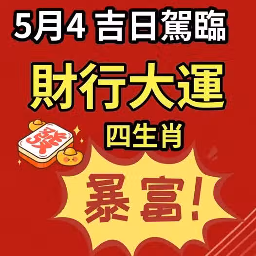 5月4吉日駕臨,財行大運,好運連連,趕快把財富金袋抱回家!