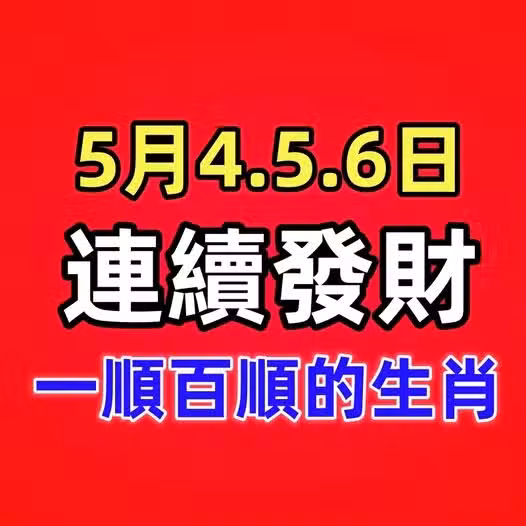 5月4.5.6日連續發財的生肖,天天快樂數錢,一順百順!