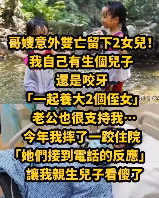 哥嫂意外雙亡留下2女兒! 我自己有生個兒子,還是咬牙「一起養大2個侄女...」老公也很支持我…今年我摔了一跤住院「她們接到電話的反應」讓我親生兒子看傻!