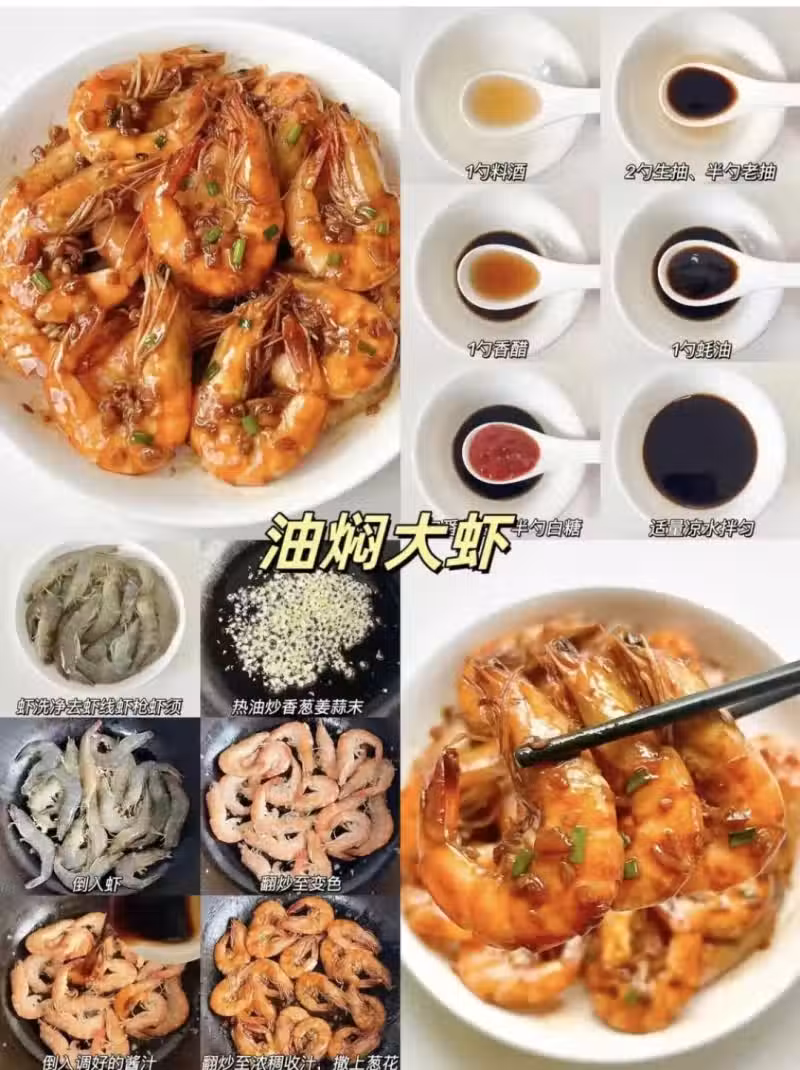 1️⃣油燜大蝦 宛如身披紅甲的美味精靈。大蝦在熱油與秘制醬汁中翻滾燜燒,出鍋時油光鋥亮。輕咬蝦殼,「咔嚓」一聲,露出內里鮮嫩肥美的蝦肉,入口先是濃郁醬香包裹,繼而是蝦肉的鮮甜彈牙在味蕾間跳躍,連手指都沾染了這勾魂的鮮香。