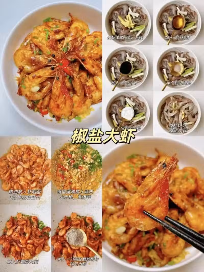 3️⃣椒鹽大蝦 大蝦經炸制後外殼金黃酥脆,猶如身披黃金甲冑。內里蝦肉依舊鮮嫩 Q 彈,裹上一層薄薄的椒鹽。入口時,先是椒鹽的咸香在舌尖散開,隨後蝦肉的鮮甜與彈牙質感洶湧而來,咸與鮮的碰撞,在唇齒間奏響美妙的味覺交響曲。