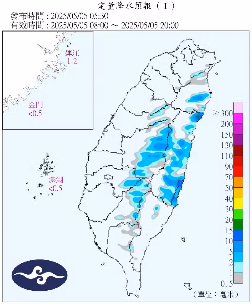 氣象署進一步預報,周四鋒面將逐漸遠離,雨勢預計趨緩,但北部及東半部仍有局部短暫陣雨,山區午後也可能出現雷陣雨。