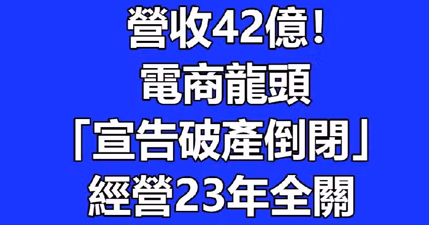 營收42億!電商龍頭「宣告破產倒閉」 經營23年全關