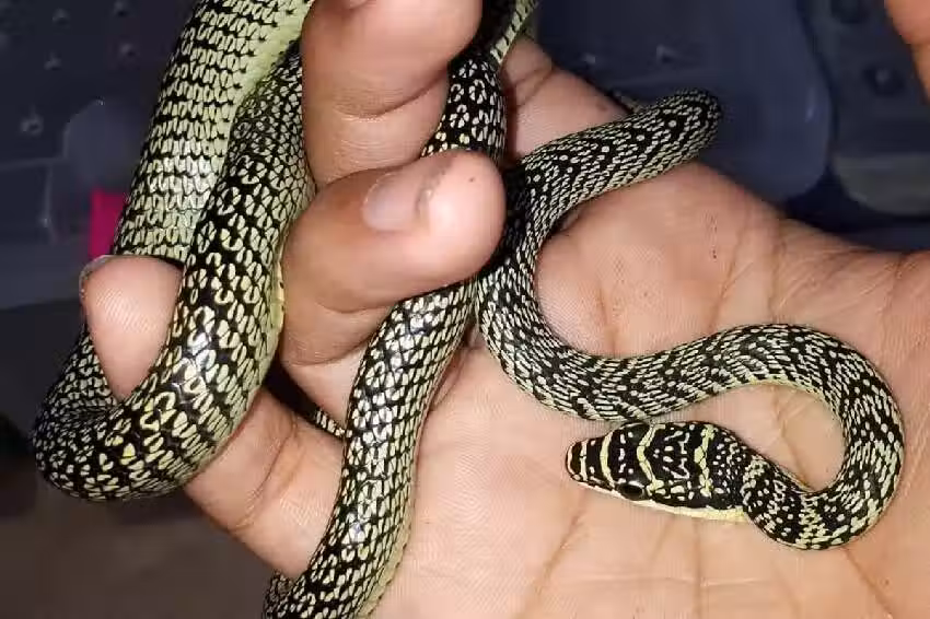 由於小蛇的花紋呈鮮綠與黑色相間,有網友就根據外觀,推測小蛇的品種很可能泰國常見的「金花斑游蛇 Chrysopelea ornata」,又稱「金樹蛇」,是有輕微毒性的蛇種。