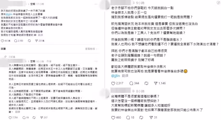 網友爆料林俊傑買春、當小王且有外流影片。(圖/翻攝自threads)