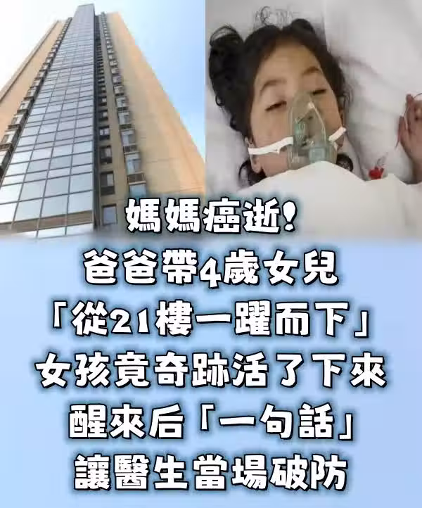 媽媽癌逝!爸爸帶著4歲女兒「從21樓一躍而下」女孩竟然奇蹟活了下來,開口的一句話,卻讓醫生們當場破防