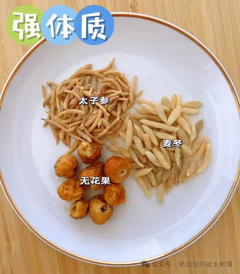 太子參5g+麥冬8g+無花果3顆,煮20分鐘