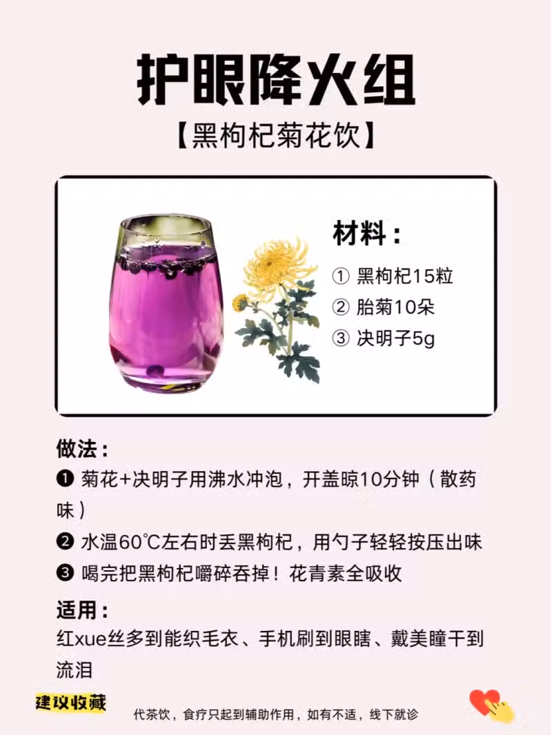 2️⃣ 黑枸杞菊花飲——護眼降火神器