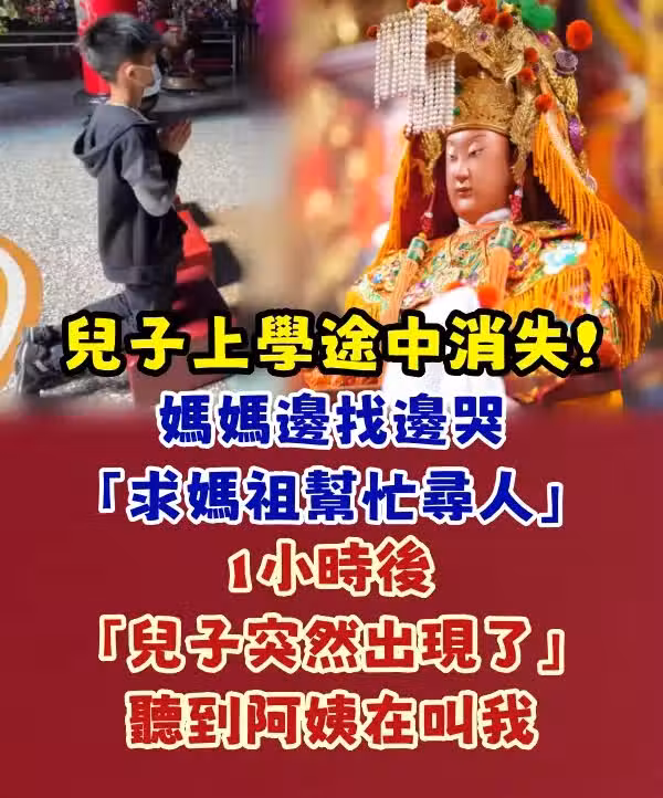 兒子上學途中消失...媽媽邊找邊哭求媽祖幫忙尋人, 1小時後兒子突然出現了:聽到阿姨在叫我