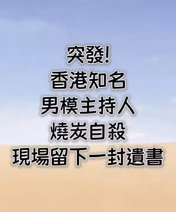 突發!香港知名男模主持人燒炭自殺,現場留下一封遺書