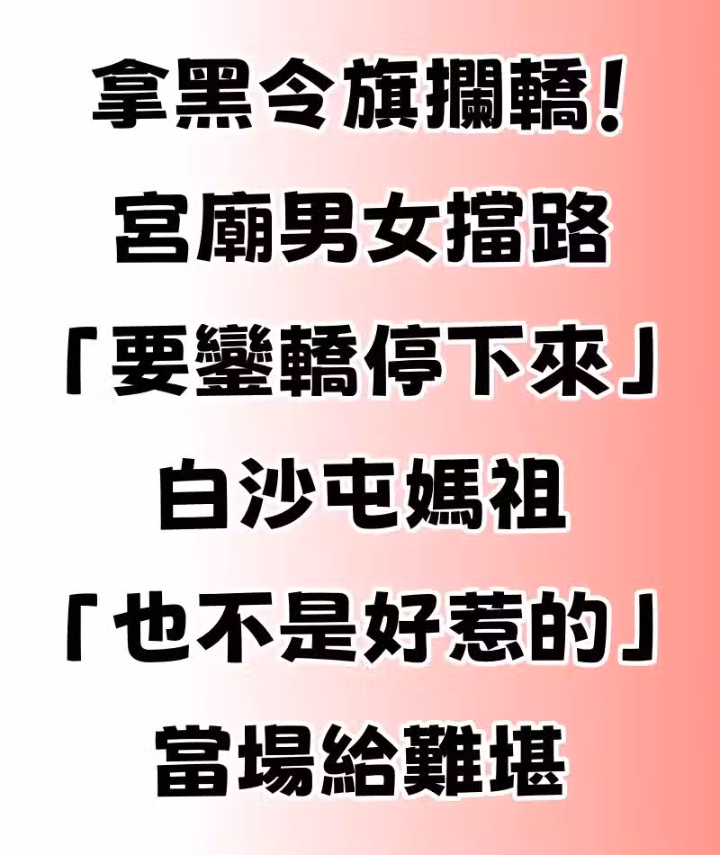 拿黑令旗攔轎!宮廟男女擋路「要鑾轎停下來」...白沙屯媽祖「也不是好惹的」當場給難堪