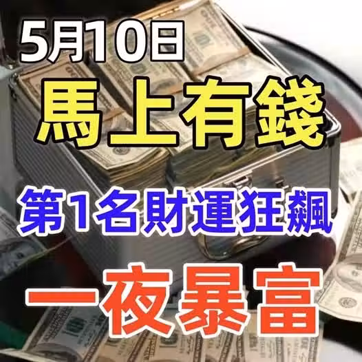 5月10日馬上有錢!第1名財運狂飆「可望一夜暴富」!