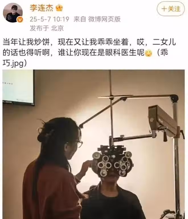 原來5月7日這天,李連杰突然在他的社交平台上,分享了一張他去看眼睛的照片。