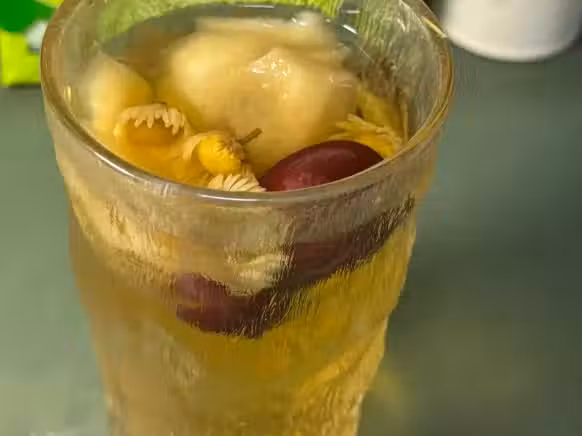 菊花清肝明目、疏風散熱;蘋果生津止渴、清熱除煩。這個組合特別適合用眼過度、肝火旺盛的朋友!
