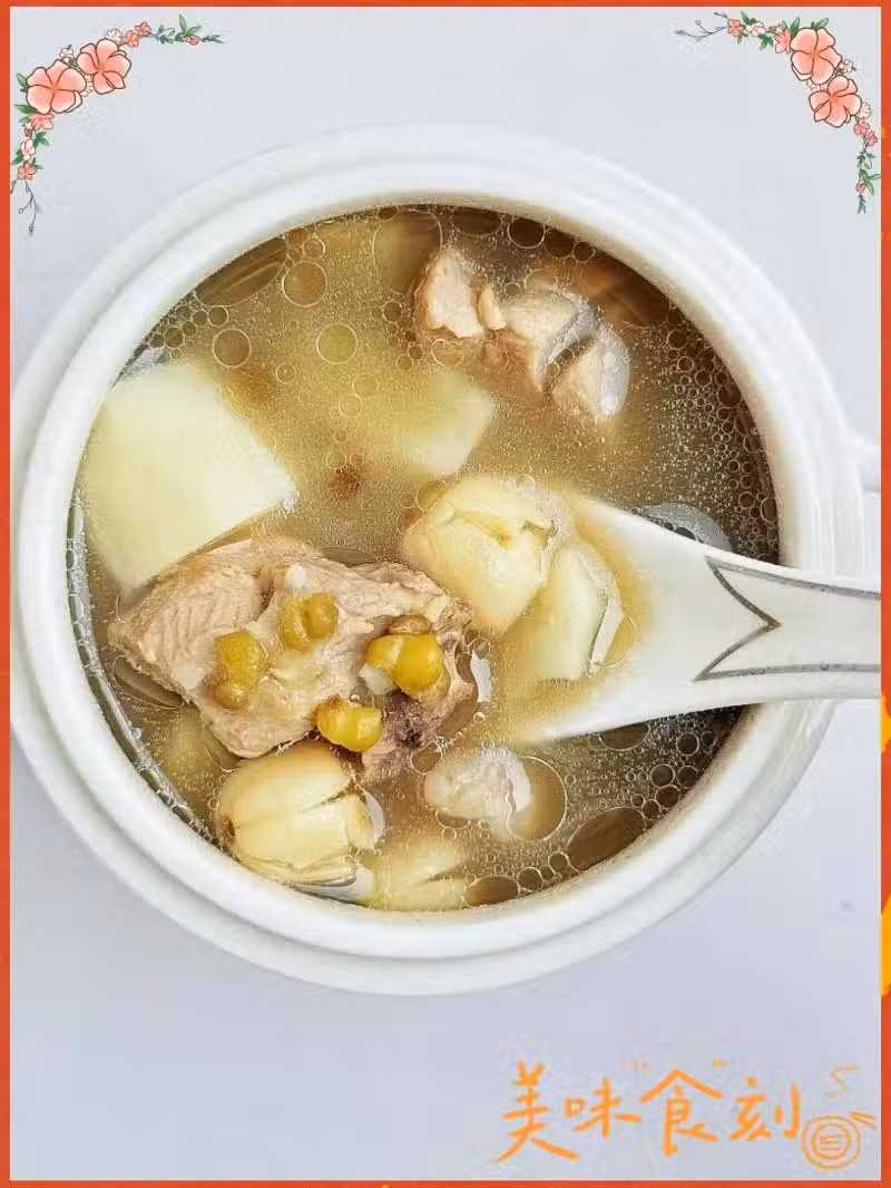 家裡人喜歡吃山藥,每次雨季就燉這個給他們吃 排骨山藥綠豆蓮子湯,口味溫和,喝完渾身清爽。加點綠豆清熱祛濕,喝完食慾變好了,身體輕鬆許多。