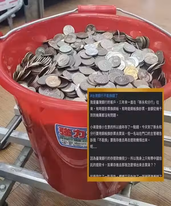 原PO在臉書社團《爆怨公社》中發文表示,他一直都在台北永和某銀行分行換錢,無論是銅板換鈔票、鈔票換銅板,從幾千元到幾萬元都沒問題。