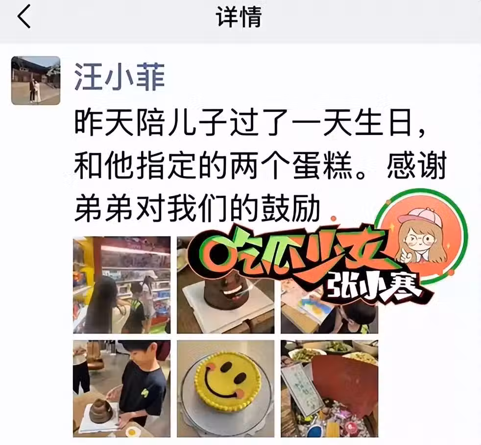 5月12日,有媒體曝光了汪小菲的朋友圈,他曬出了前一天陪伴兒子度過生日的照片,表示兩個蛋糕都是兒子自己選的,兒子還寫了母親節的感謝小禮物,讓汪小菲感動不已,直言:「謝謝弟弟對我們的鼓勵。」