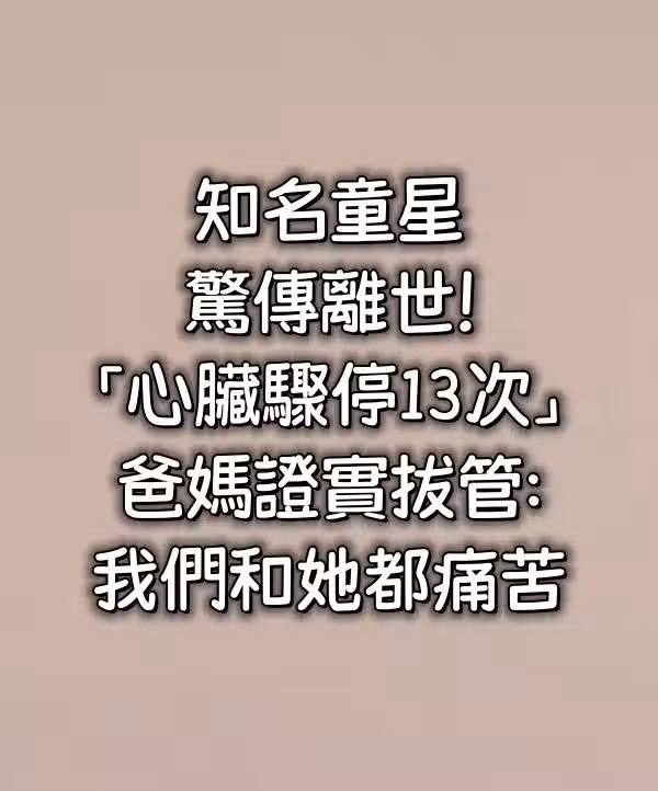 快訊/知名童星驚傳離世!「心臟驟停13次...」爸媽證實拔管:我們和她都痛苦