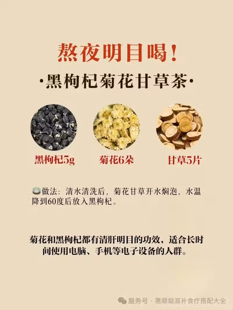 食材:黑枸杞5克、菊花6朵、甘草5片